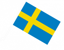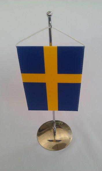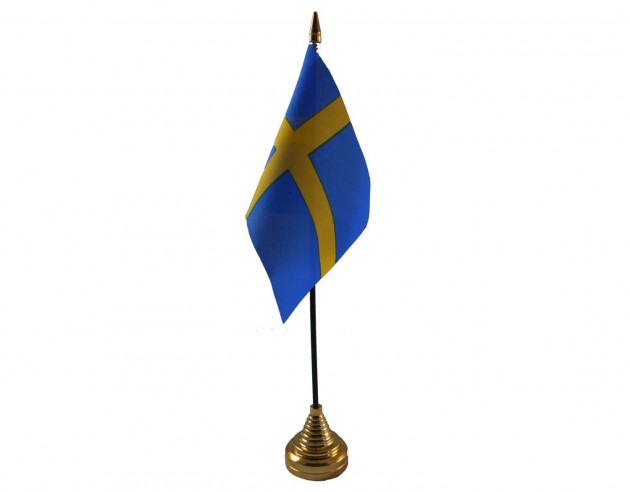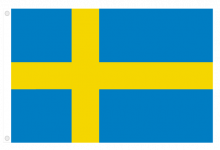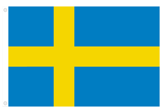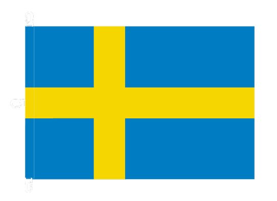 The flag with yellow eccentric cross of the Danish Dannebrog. The cross was firstly introduced on the standards of the King Gustav Vasa. The day 6th June in 1521 is dated until now in Sweden and is celebrated as a day of Sweden flag. The current appearance of the flag is used from the year 1906. The yellow colour represents mineral heritage of the country and blue is the colour of the peace.